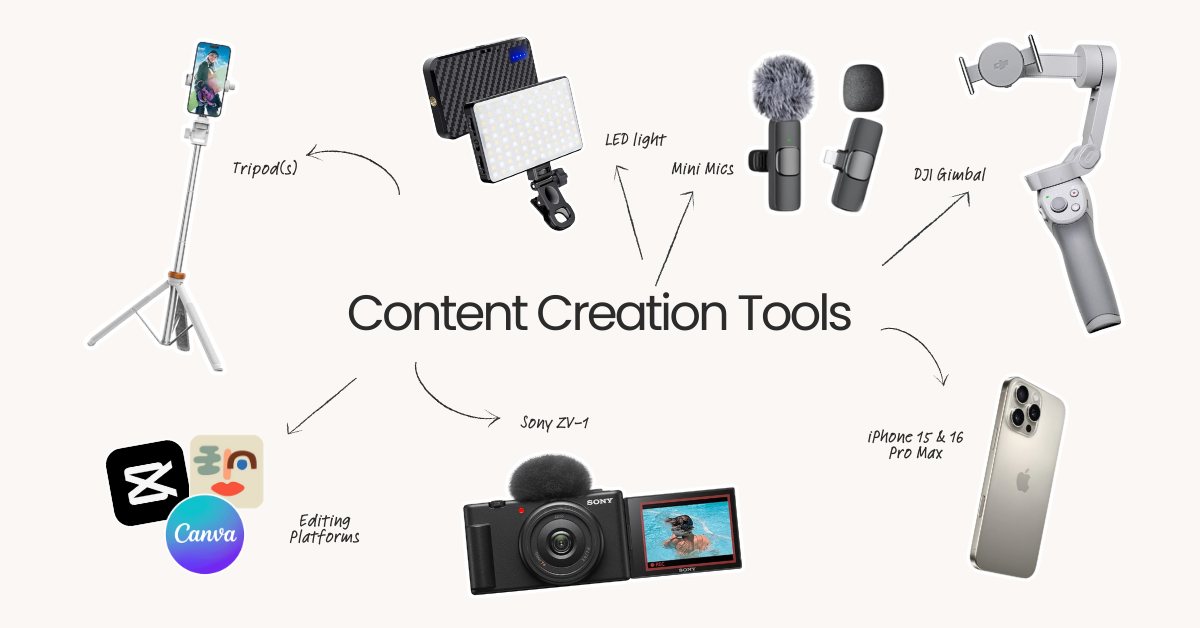 But here’s the thing: you don’t need a closet full of gear or expensive subscriptions to get started. You need the right balance of tools, skills, and mindset. In this blog, I’ll share the essentials in my own toolkit - the apps, gear, and non-material “tools” that make managing multiple accounts and creating content for clients possible.